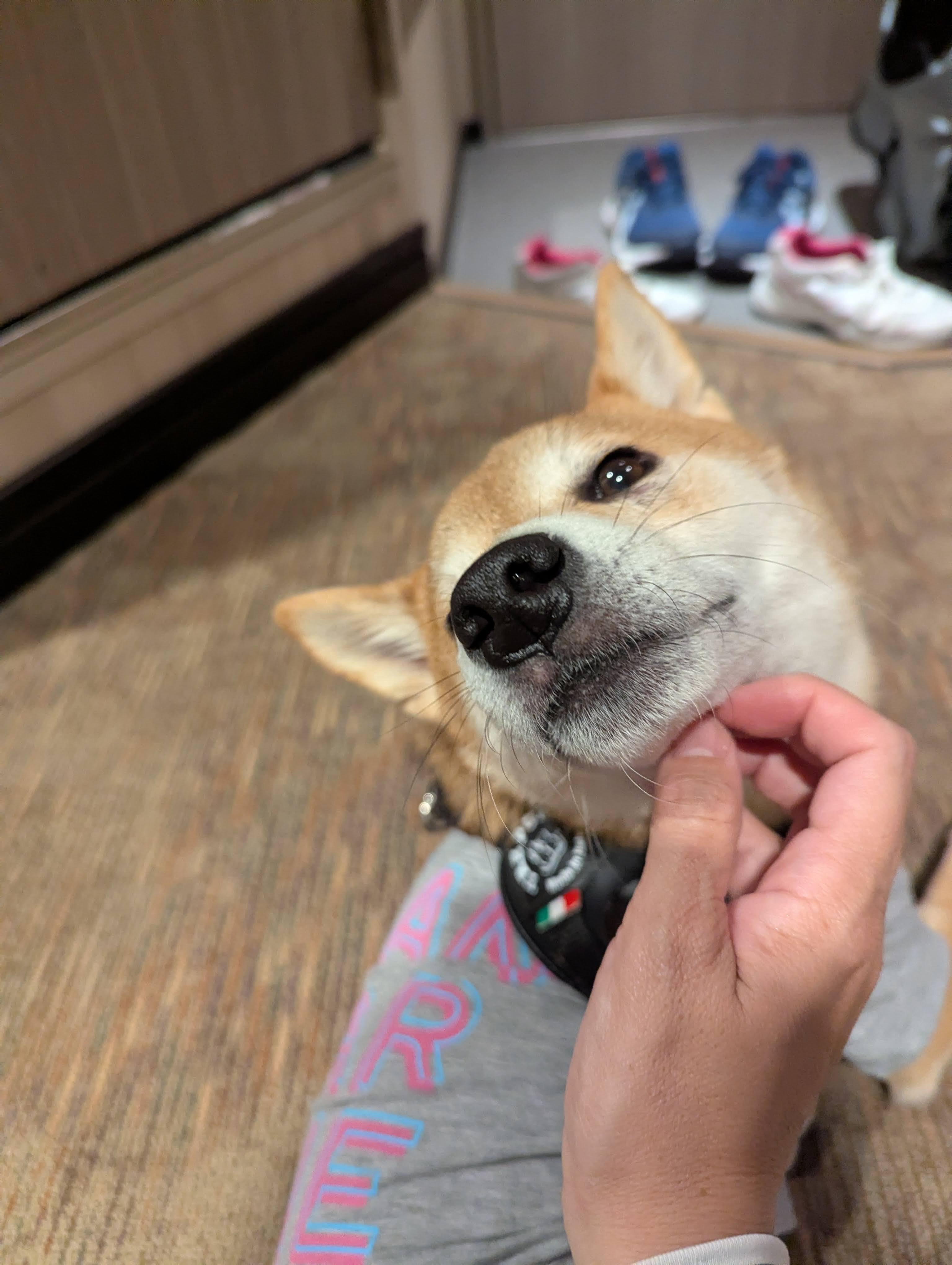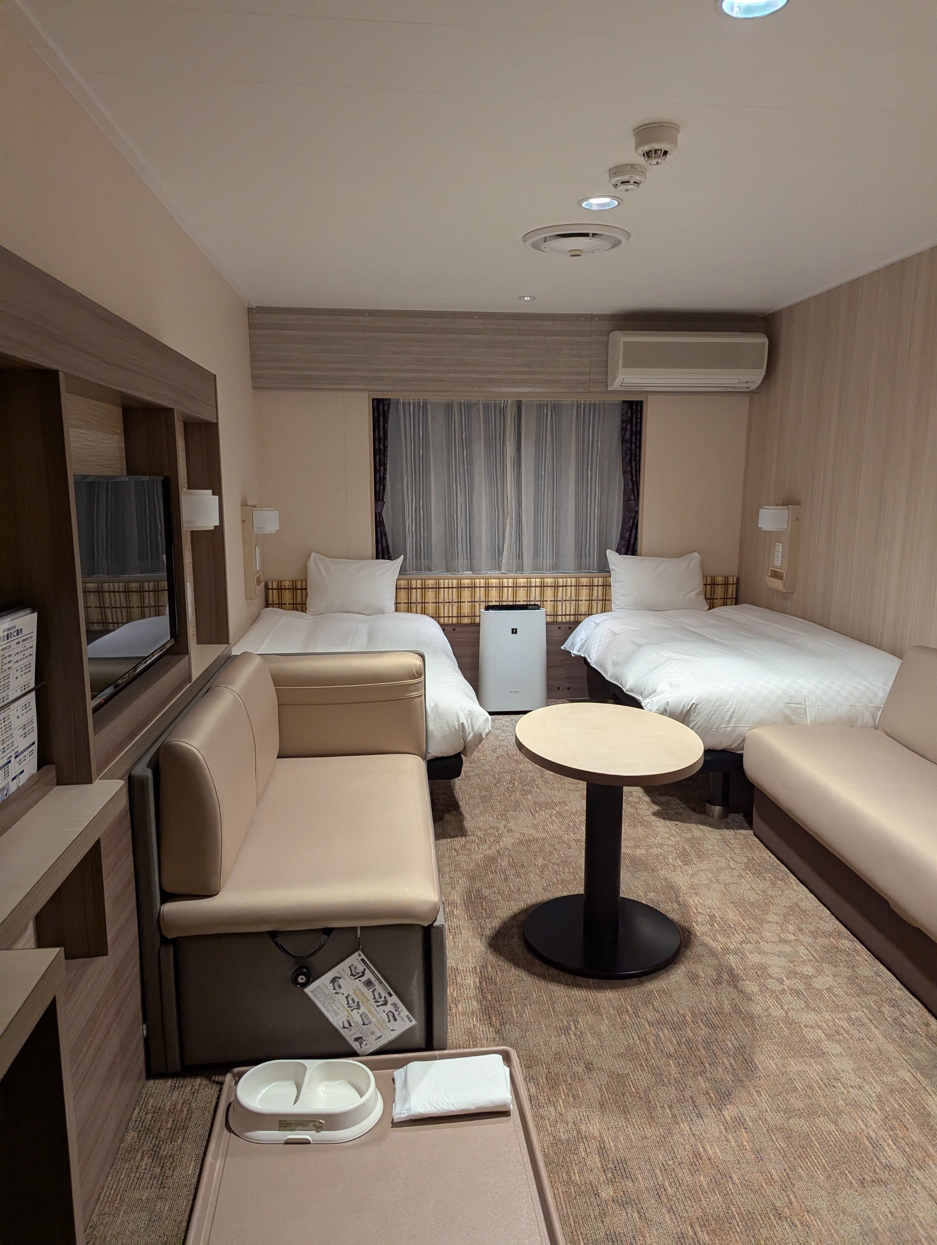 駐車後は各自荷物をまとめて部屋へ移動。ペットルームエリアまでは完全に頭が出ないよう覆って移動。ハルノ店長はカート、他の小さいワンちゃんはペット用リュックやクレートに入っていました。