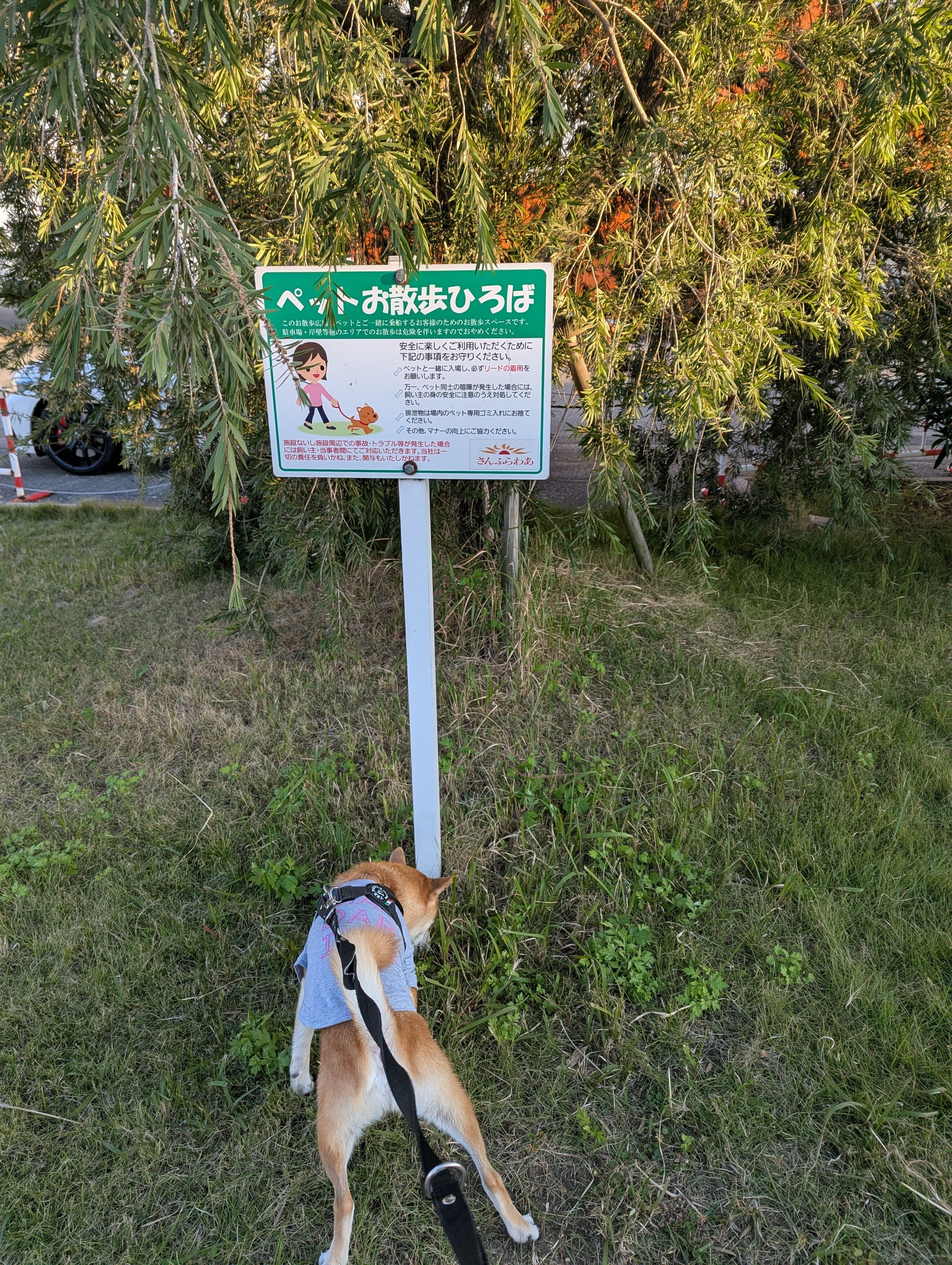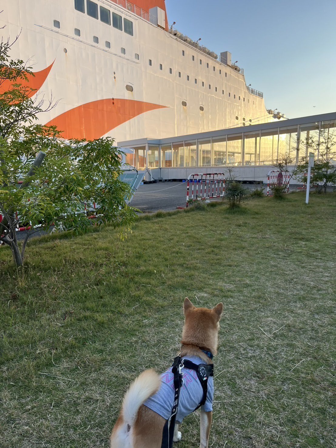 南港に到着。係員の案内に沿って指定場所駐車。出航90分前までに受付を済ませる必要あり。受付後は指定時間まで自由。乗り場近くの「お散歩広場」でお散歩。時間になると係員の案内に沿って順番に船内へ入り指定場所に駐車。