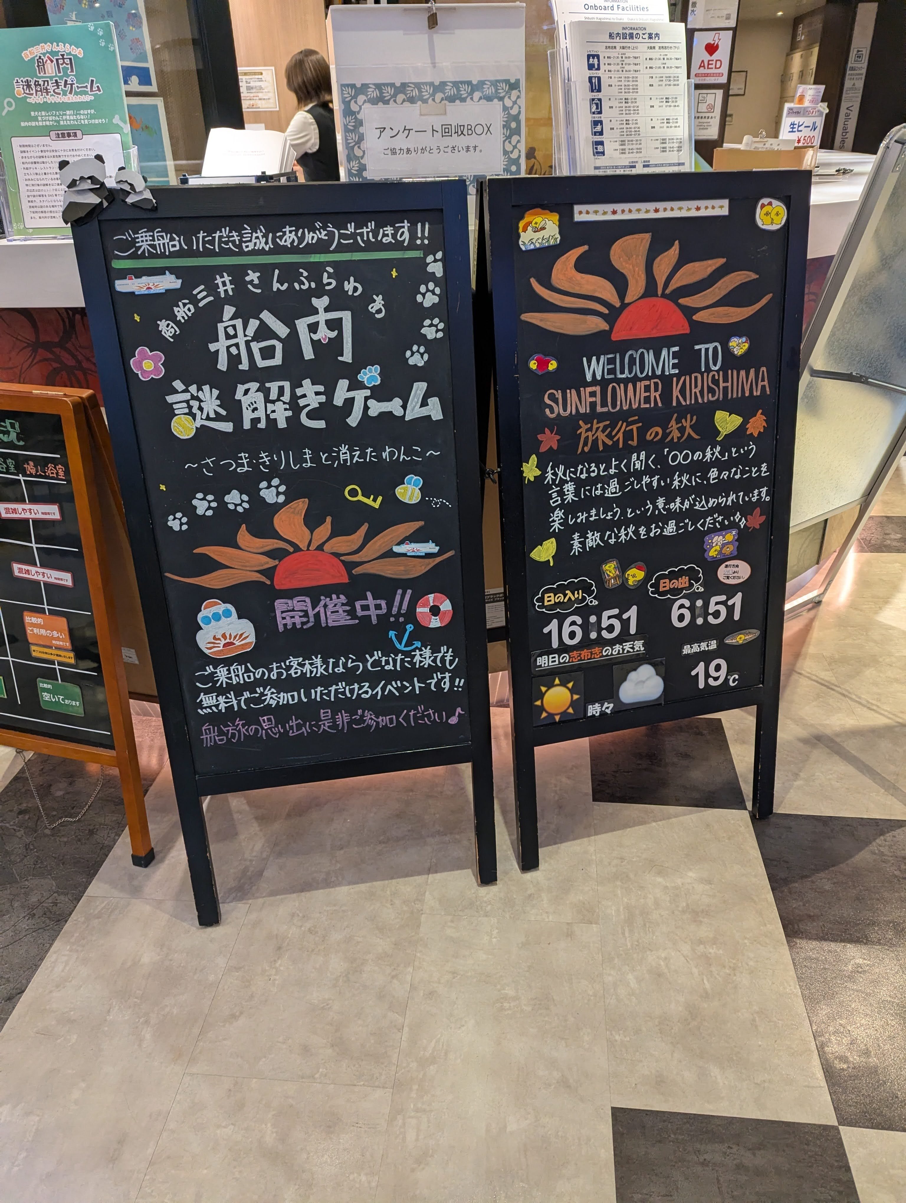 船内放送を常にチェック。イベント他重要情報随時あり