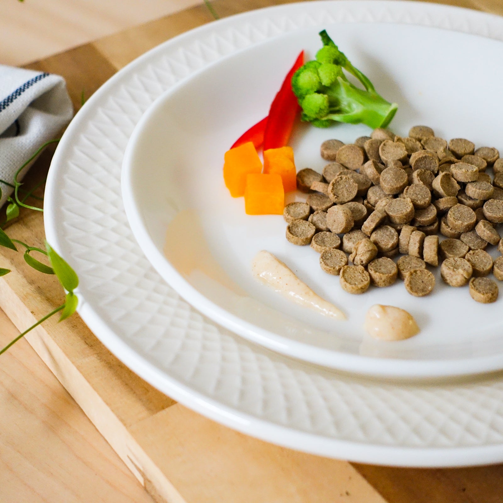 「やわらかドライ」シリーズは通常のドライシリーズよりもやや小粒でソフト、よりカロリーも低め。水分量が多く、和風だしの香りはより強めになっており、普通のカリカリが苦手な愛犬も食べやすくなっています。