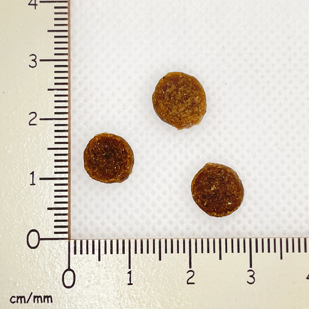 ・成分値:粗タンパク質 18.3%以上、粗脂肪 6.9%以上、粗繊維 0.8%以下、粗灰分 5.6%以下、水分 30.0%以下