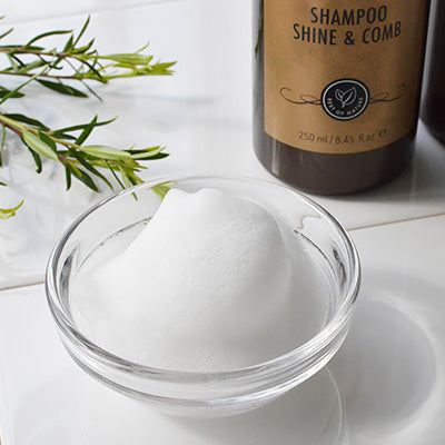 1.適量のシャンプー1に対し10倍の量の水を加え泡立て、やさしくパートナー(愛 犬)の皮膚をマッサージするように洗った後、シャワーヘッドを皮膚に密着させ、ぬるま湯でよくすすぎます。ナチュラル成分で、泡が少なくても充分に洗浄できます。