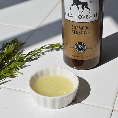 「センシティブ」は、よりやさしいケアが必要な子犬や、頻繁に洗いたい皮膚タイプの愛犬向け。アトピー性皮膚炎のハルノ店長はこちらを使います。優しい洗い上りとほのかなラベンダーの香りに癒されます。