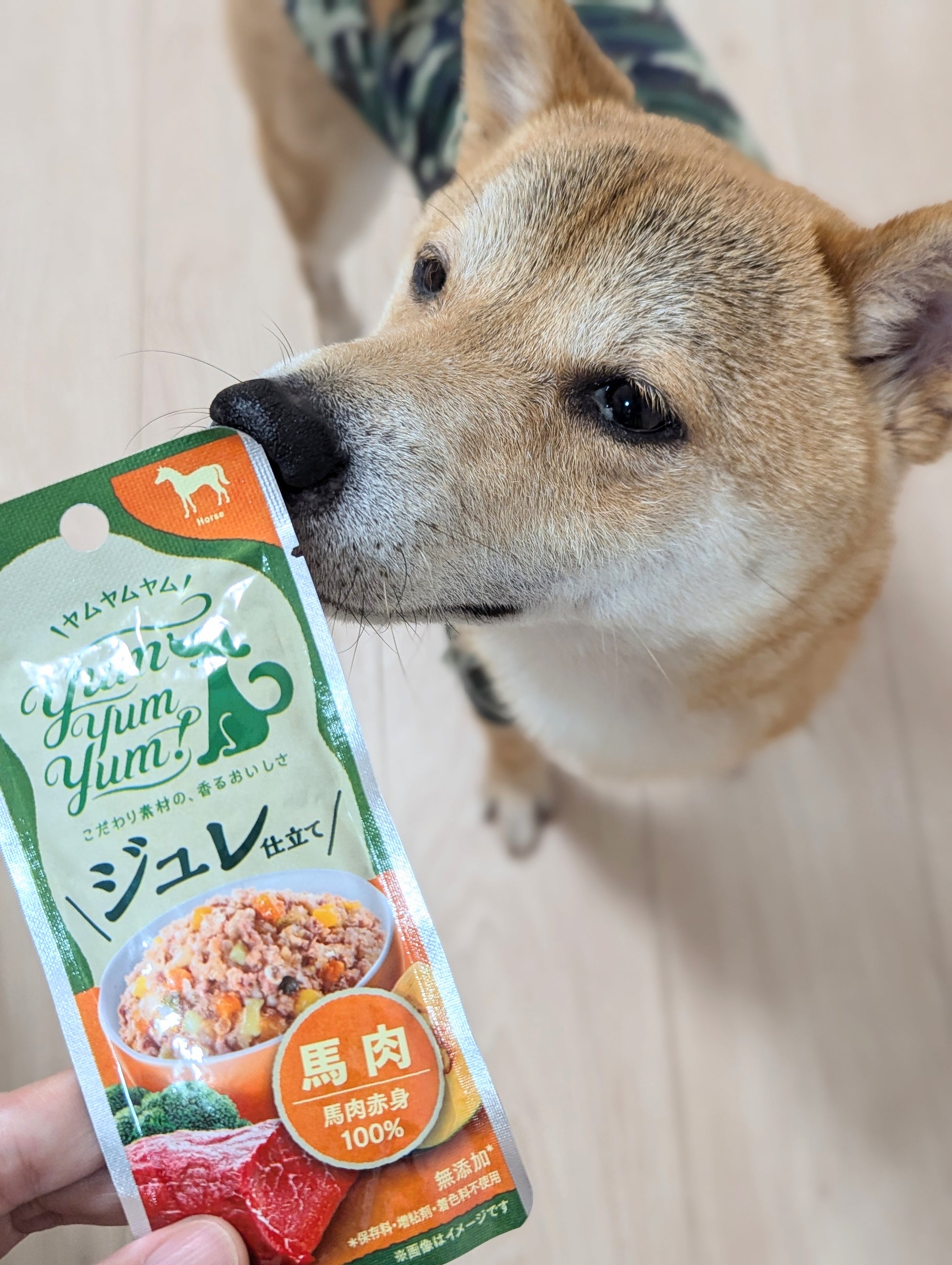 馬肉は高タンパク低脂質、亜鉛や鉄も豊富に含まれており皮膚の健康や免疫を維持する効果が期待できます。ジュレ仕立ては簡単にいつもの食事が豪華になる優れもの。犬に必要な水分量は体重1kgあたり50ml前後が目安と言われていますので、ウェットを混ぜて食事で自然に補いましょう。